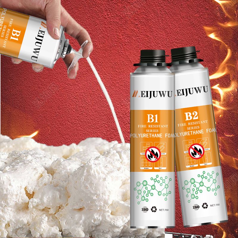 Meijuwu B1&B2PU foam pu foam is is self-extinguishable aerosol polyurethane foam for filling, sealing and bonding gaps, joints and cavities. Fixing and insulating of door and window frames. Filling of penetrations in walls. insulating electrical outlets and water pipes. lt does not contain any propellant gases that are harmful to the ozone layer.